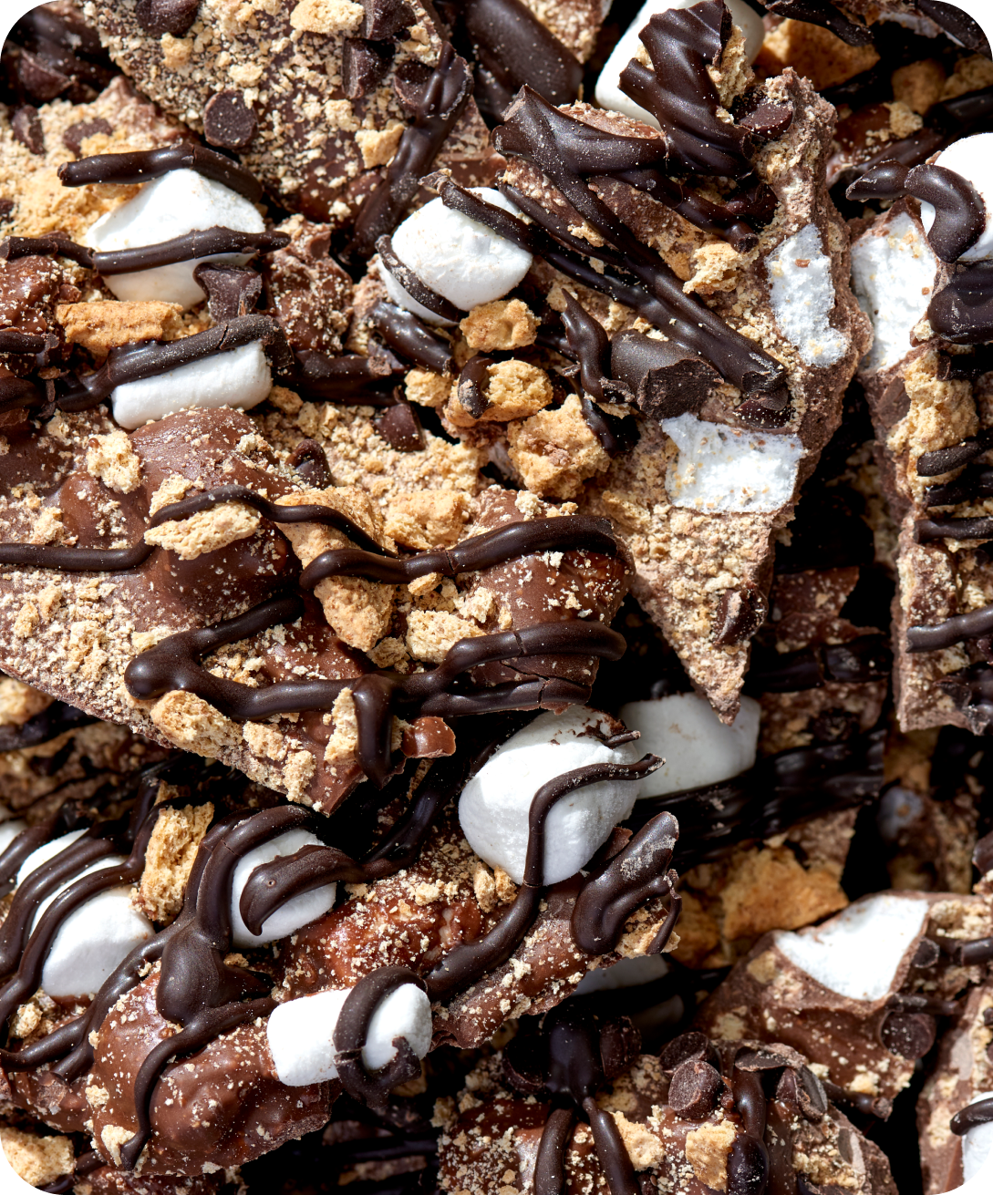 Our handmade chocolate S'mores Bark is made in small batches using the highest quality milk chocolate, mixed with cinnamon graham crackers, vanilla marshmallows, and then topped with a decadent dark chocolate drizzle to make for the ultimate campfire experience.